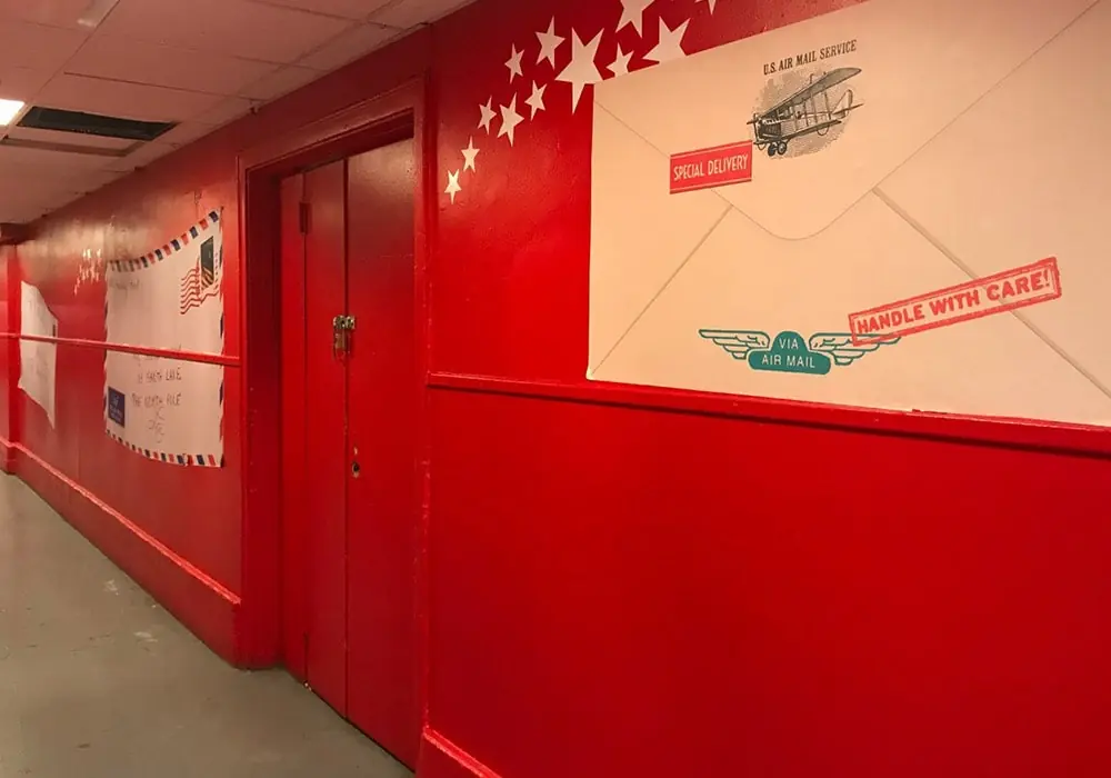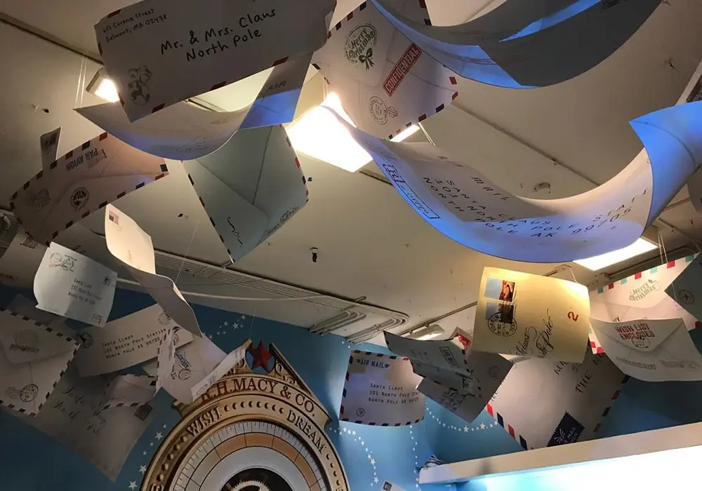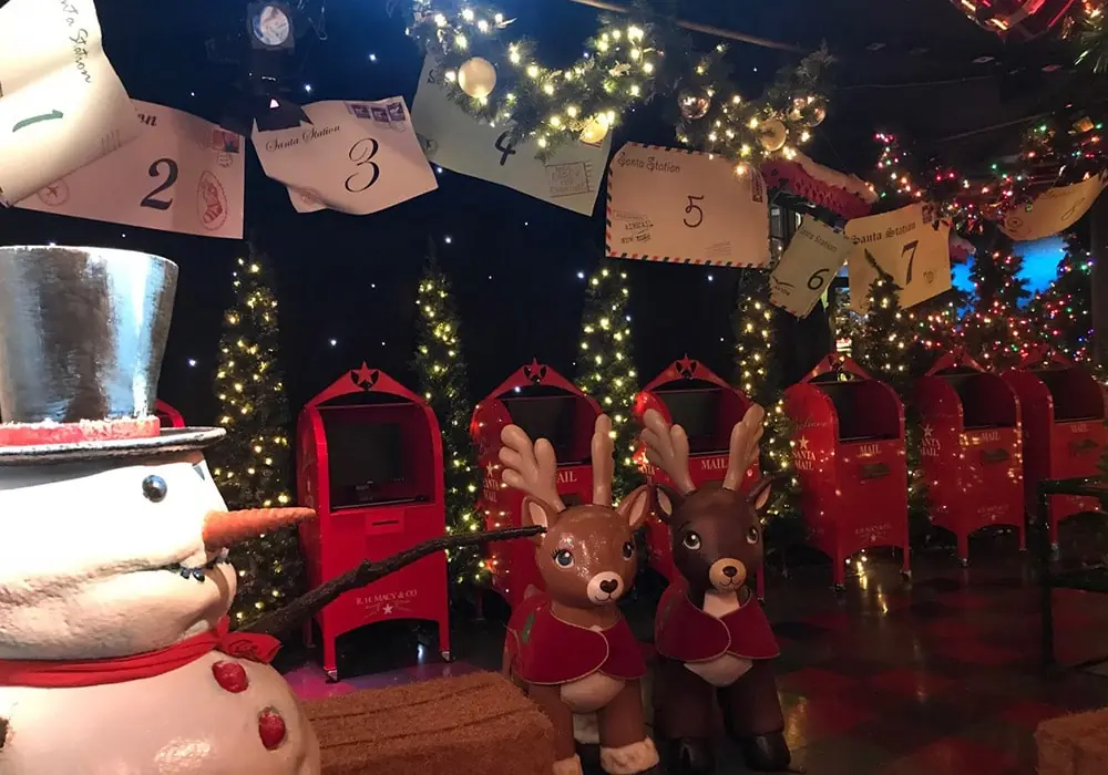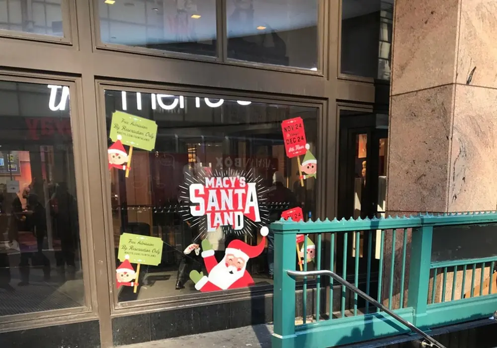 Santa Land- Wall murals, CMYK + Light feature wall mural, acrylic break formed letters to Santa, window graphics.